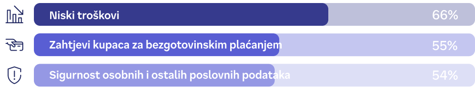 Istraživanje tvrtke NMI pokazalo je da su ključni čimbenici koji utječu na odluku malog trgovca da (konačno) uvede kartično plaćanje putem aplikacije: